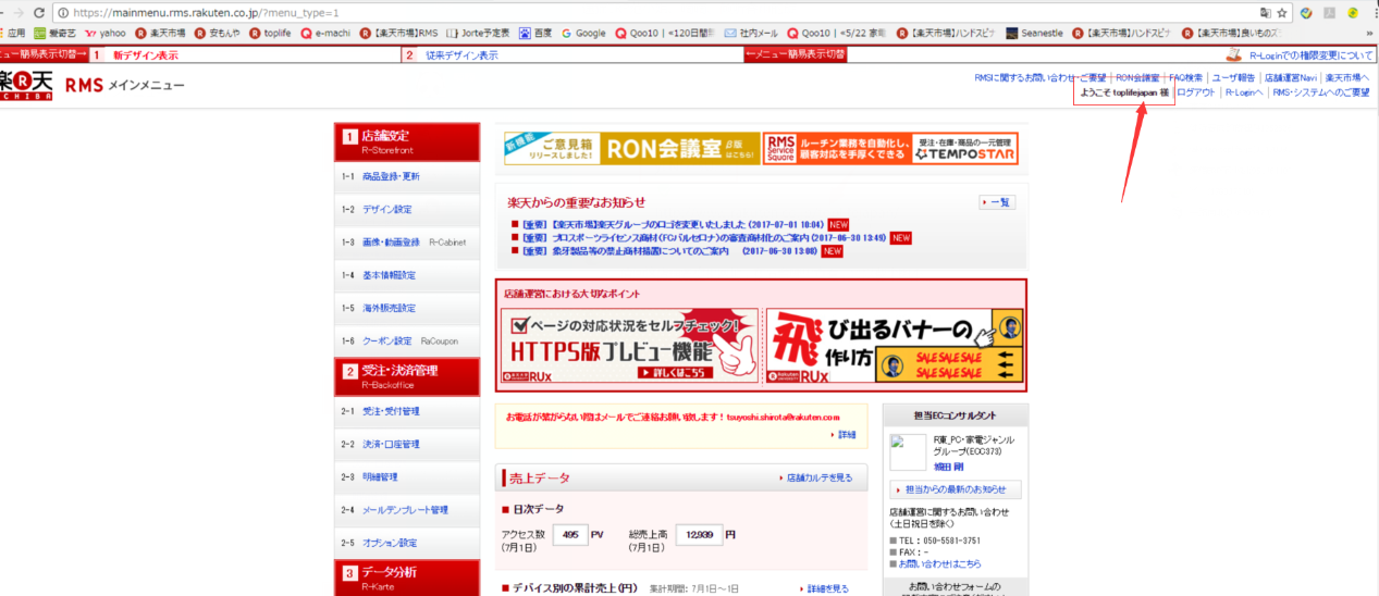 首先:登陆乐天RMS系统,https://mainmenu.rms.rakuten.co.jp/rms